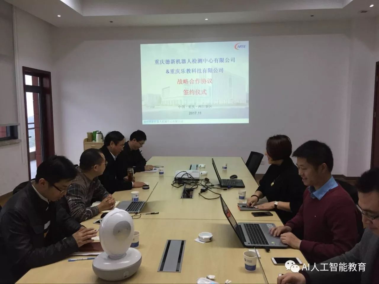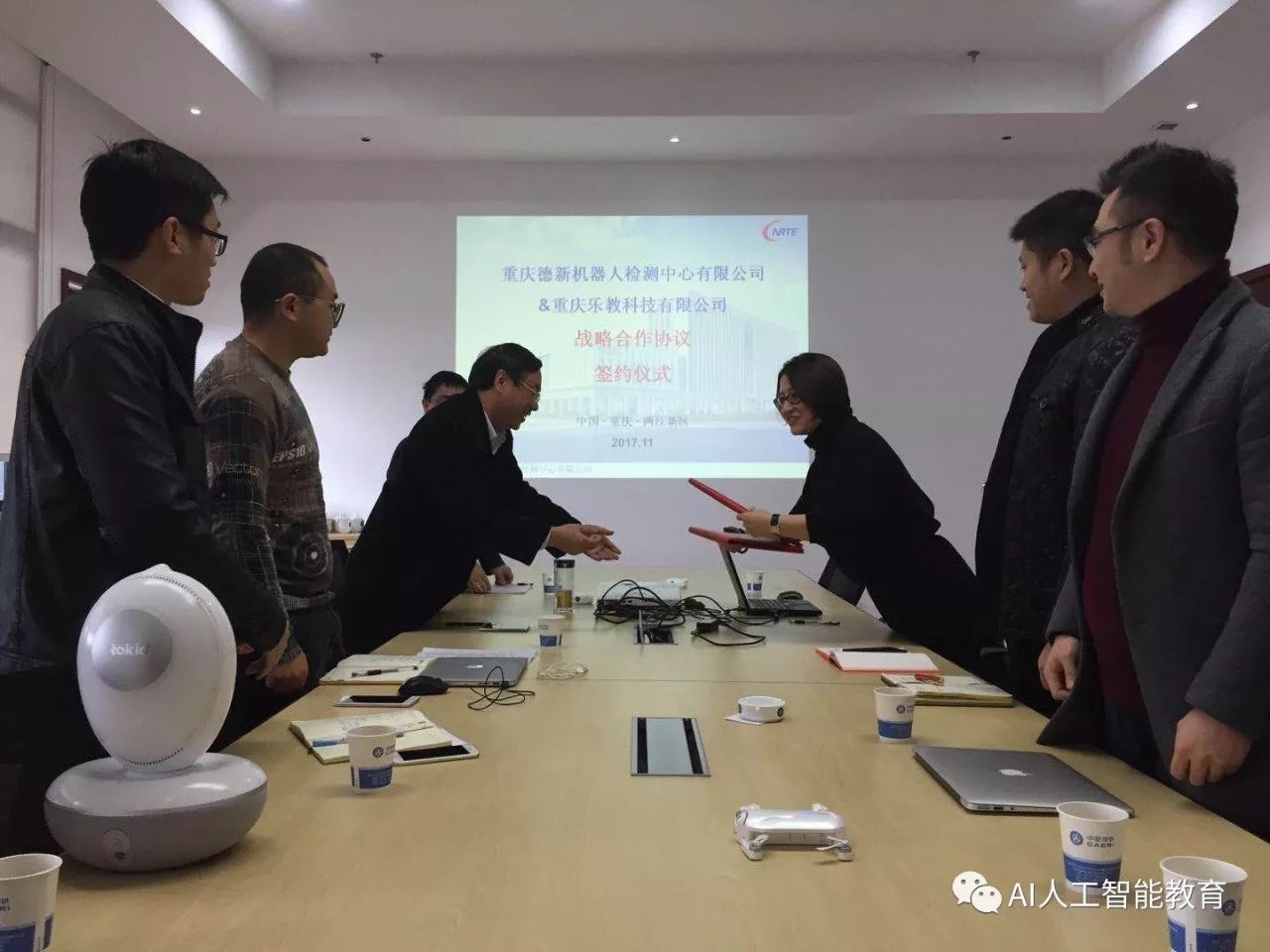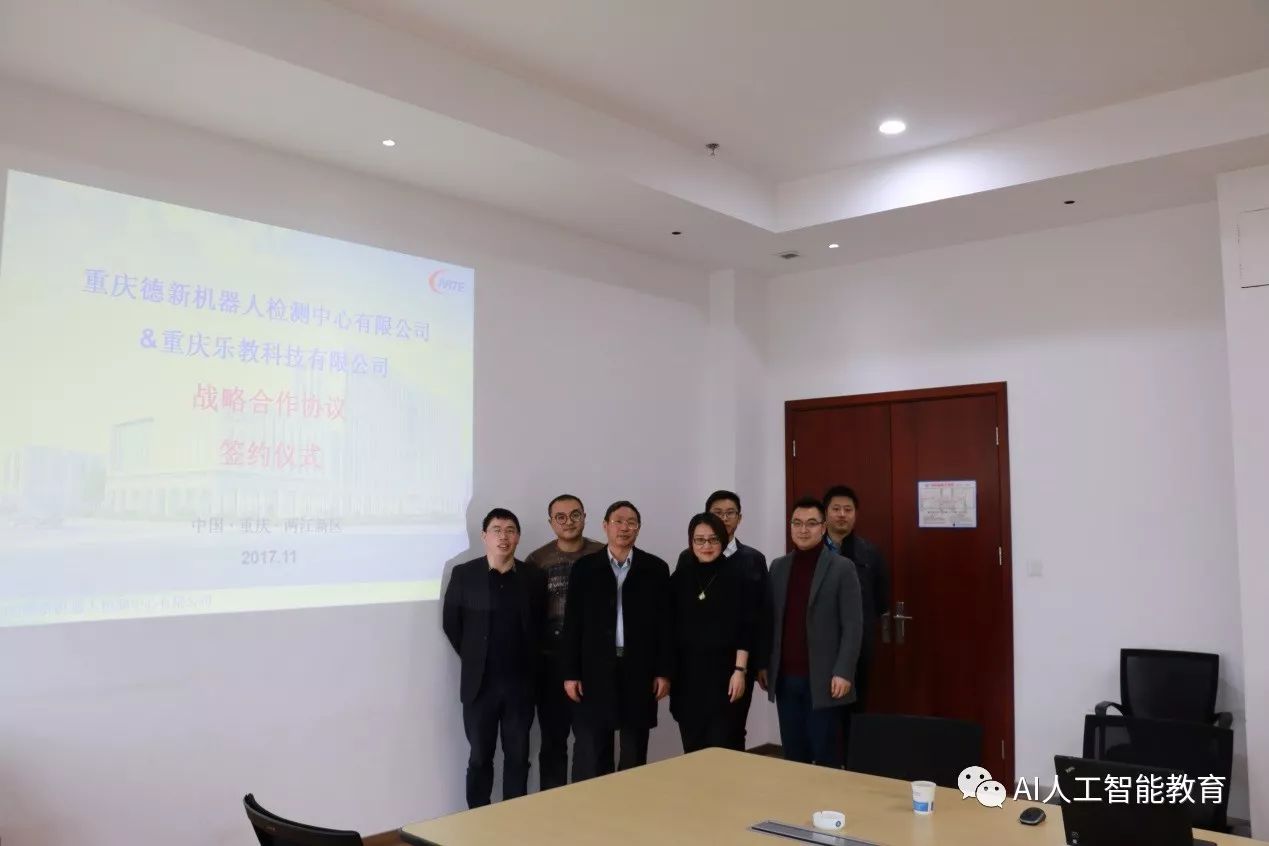 本次簽約儀式在重慶德新機器人檢測中心有限公司舉行,出席會(huì )議的有德新公司歐家??偨?jīng)理、零部件檢測部袁強部長(cháng)、環(huán)境檢測部黃武凱部長(cháng)、研發(fā)中心劉飛主任、服務(wù)機器人檢測部彭鵬部長(cháng)、服務(wù)機器人檢測部王雨琴工程師等領(lǐng)導,樂(lè )教科技CEO張佳、副總經(jīng)理張可、副總經(jīng)理林科等領(lǐng)導,出席簽約儀式。