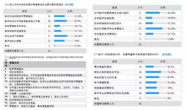 校長(cháng)們尚未來(lái)得及感受北京的寒意,一份訓前調查問(wèn)卷就已通過(guò)群呈現在他們面前。問(wèn)卷中的22個(gè)問(wèn)題,覆蓋了參訓需求的方方面面。而統計后的調查數據,也被培訓團隊迅速地發(fā)給了每一位授課專(zhuān)家。專(zhuān)家們則通過(guò)數據,更精確地調整課程內容和講授方式。