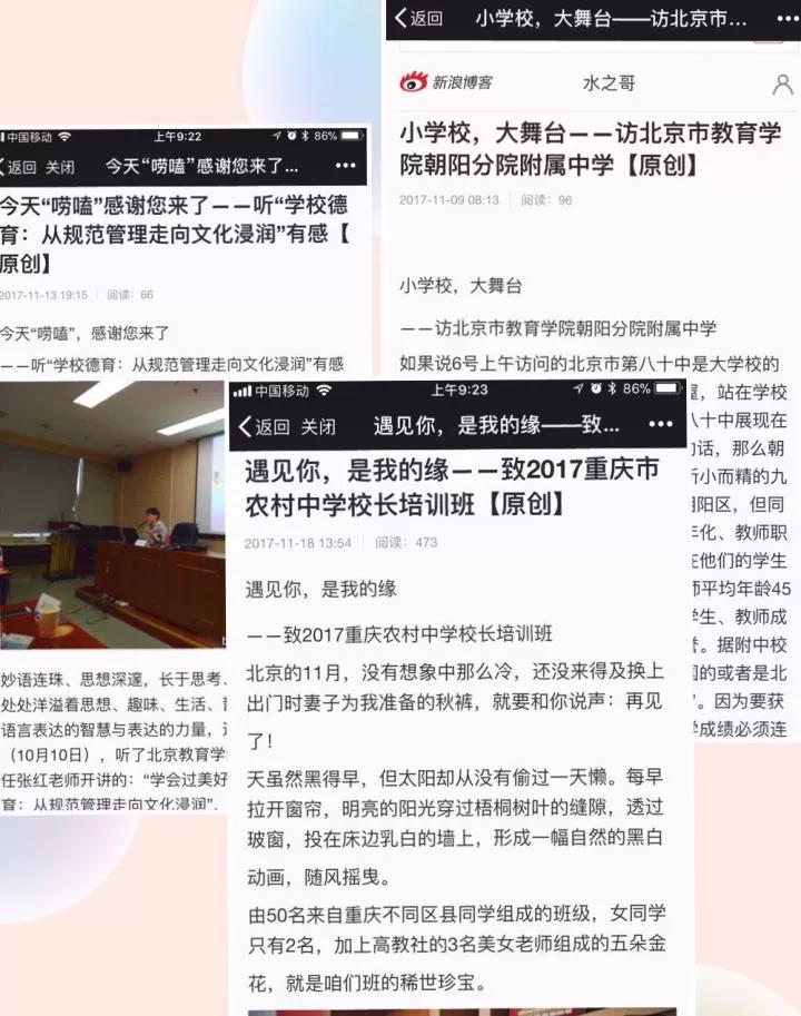 在同為鄉村學(xué)校的十五中南口分校,鄭校長(cháng)以“名校引領(lǐng)發(fā)展,改變促進(jìn)提升”為主題,從學(xué)校整體情況、辦學(xué)思想和文化特色、兩支隊伍建設及辦學(xué)特色等方面進(jìn)行了詳細介紹,并結合自身管理經(jīng)驗,和參訓校長(cháng)們進(jìn)行了探討。還和校長(cháng)們就學(xué)校管理、獎勵機制落實(shí)、學(xué)校特色課程開(kāi)展等方面問(wèn)題進(jìn)行了深入交流。為什么我們總在不斷尋求,因為我們愛(ài)的深沉;為什么我們總是精神抖擻,因為我們愛(ài)的深沉。愛(ài)這個(gè)國家,愛(ài)付出了半輩子的教育事業(yè),愛(ài)學(xué)校里的每一個(gè)孩子,他們善良,他們渴望,他們需要我們?yōu)橹畩^斗。夢(mèng)想是對自己的期許,夢(mèng)想是對應然之事的承諾。