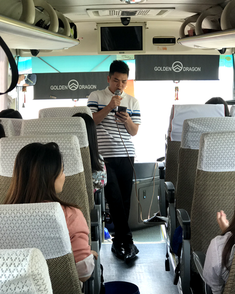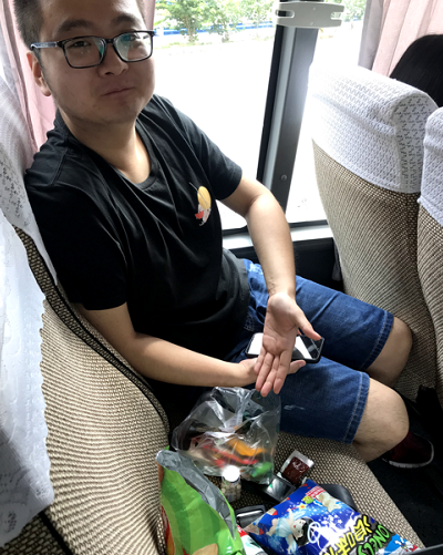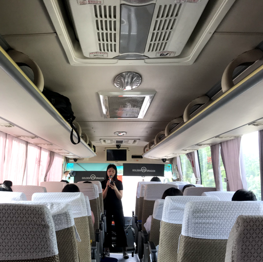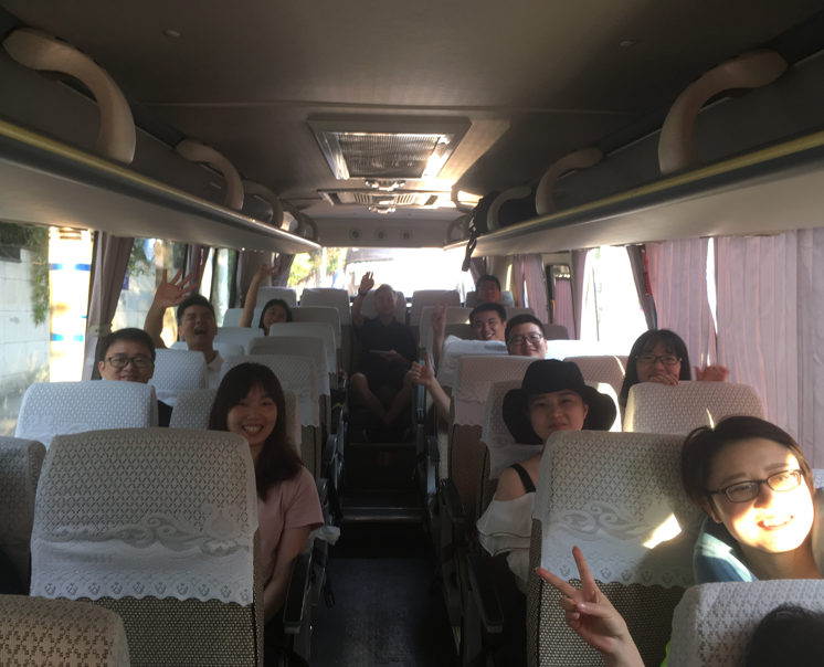 在大巴車(chē)上,我們有說(shuō)有笑,