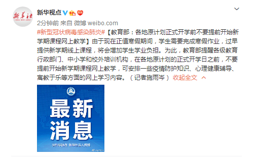 教育部:各地原計劃正式開(kāi)學(xué)前不要提前開(kāi)始新學(xué)期課程網(wǎng)上教學(xué)
